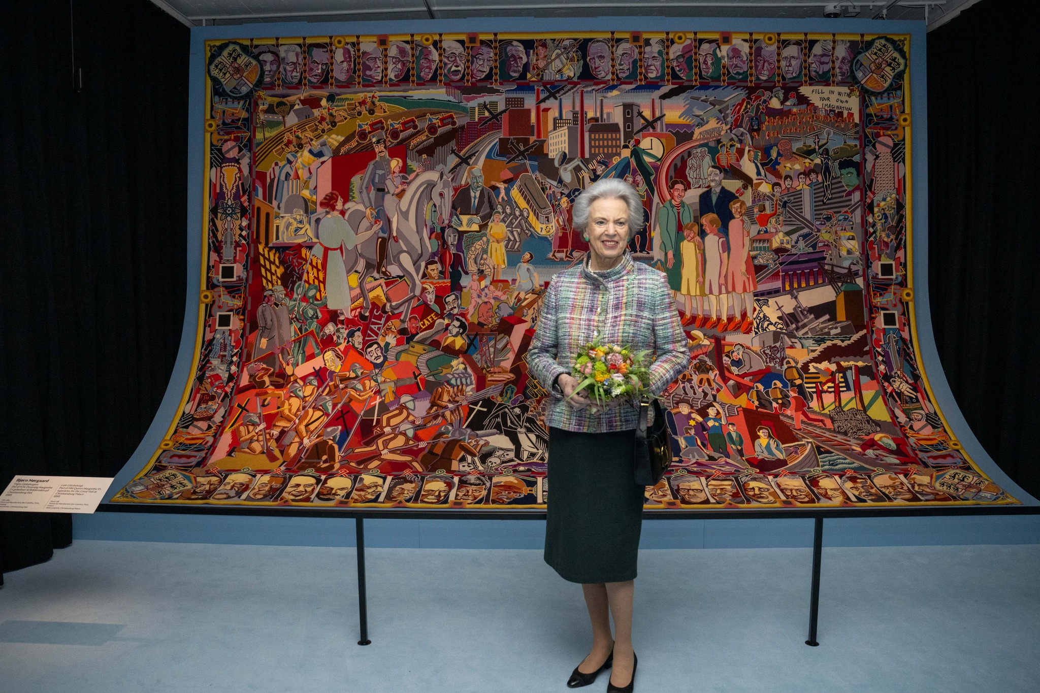 Museumsdirektør Thomas Thulstrup viste prinsesse Benedikte rundt. Prinsessen stillede på høflig forespørgsel fra fotograf Gert Blume, op foran Gobelinserien, – udlånt af Christiansborg Slot