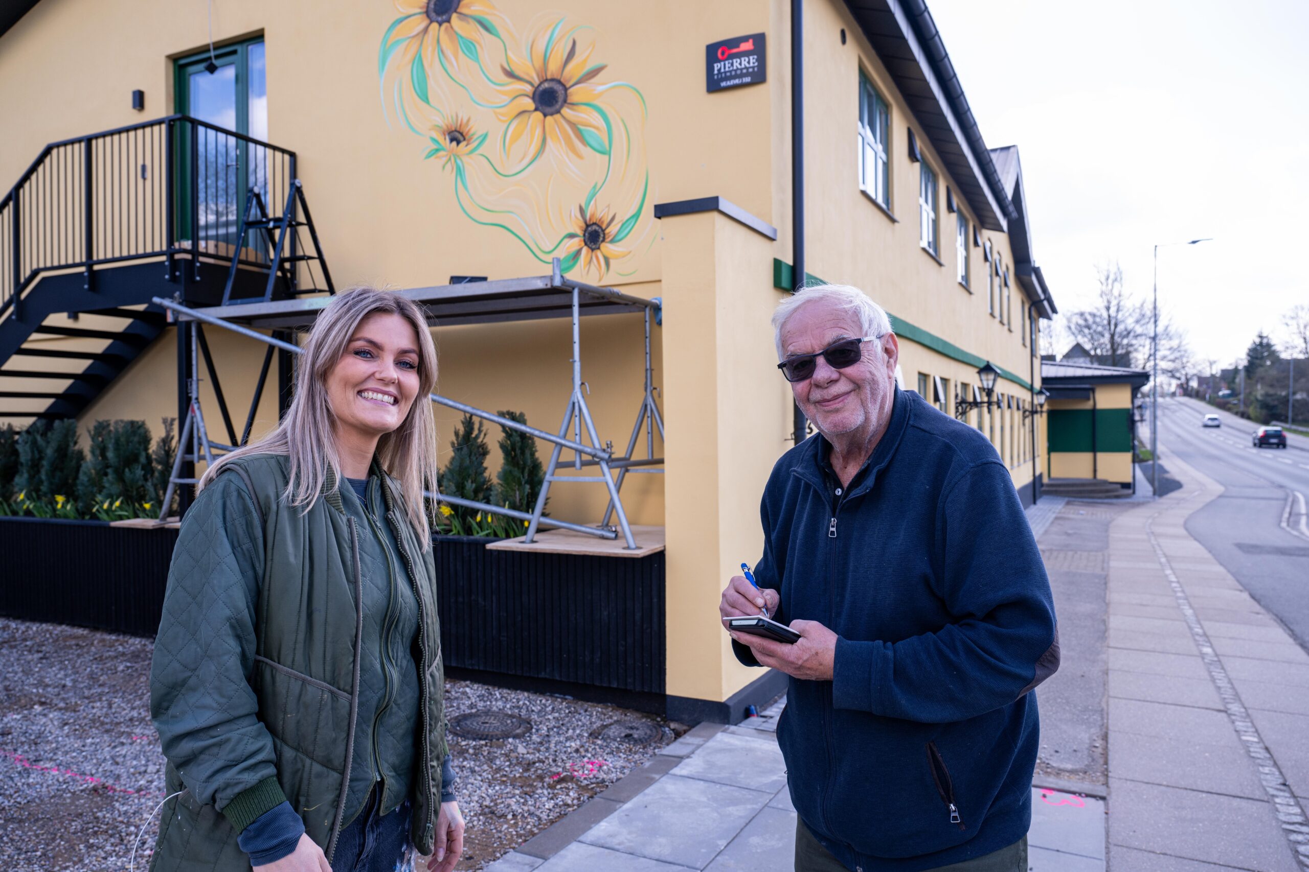 Ditte Høj fra Kolding, er en ung talentfuld autodidakt kunstner, der er i gang med at udføre en udsmykningsopgave for Pierre Ejendomme. Hun maler solsikker på det nye bosted, der tidligere var Bramdrupdam Kro. Pierre har renoveret kroen med respekt for historiens vingesus, – hvor facaden fremstår som den så ud i 70erne